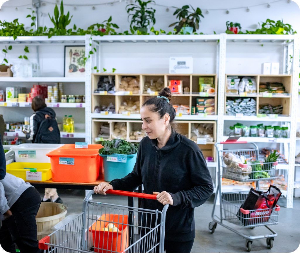 After further reflection and gaining access to more square footage for our program space, we once again pushed ourselves to enhance our offering and increase choice for our participants. In November, participants returned to onsite programming, and our emergency food services transitioned to a grocery-store-style setup with even more variety and choice of staple ingredients. Households now receive a monthly allocation of “Depot dollars” to spend, with part designated specifically for fresh fruits and vegetables and another portion reserved for dry staple goods.